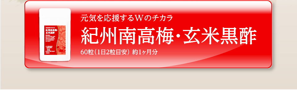 ・若々しさを保ちたい… ・食生活の乱れや巡りの悪さからスッキリしない… ・ドロドロした生活から開放されたい… 元気を応援するWのチカラ 紀州南高梅・玄米黒酢